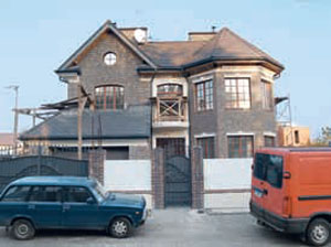 Внешний вид дома решен на контрасте: темно-коричневая облицовка всего фасада и белый декор в верхнем обрамлении окон и дверей, в окантовке балконов, в карнизах крыши и навеса, в отделке цоколя. Очень гармонично дополняет эту картину крыша почти черного цвета. Забор, колонны которого облицованы таким же клинкерным кирпичом, объединяет эти составляющие в ансамбль. Рисунок ажурной ковки балконов повторяется в воротах и калитке ограждения участка.