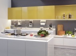 Фасад Белый / Карри зеркальный глянцевый. 25 мм столешница Белый шероховатый в распиле. Видимая сторона - Белый зеркальный глянцевый. Комбинация ручек серия Matrix Art интегрированная в корпус. Примечание Линейка Matrix Art - главный акцент сделан...